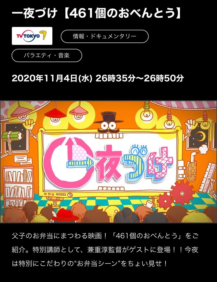 『一夜づけ』@テレビ東京 という番組でも