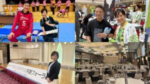 青森テレビの新井宇輝アナウンサー、青森朝日放送の寺崎美佑アナウンサーと